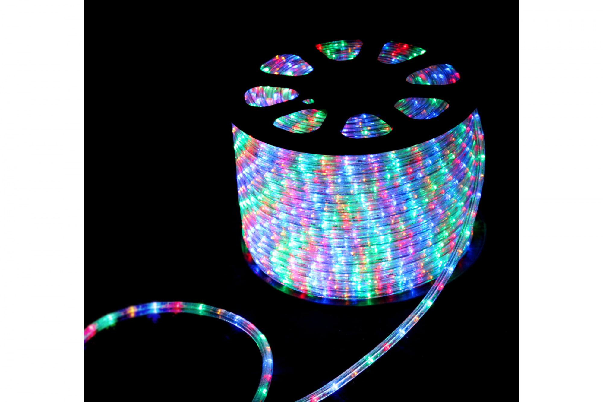 Светодиодная технология обеспечивает энергоэффективность и долговечность работы. Дюралайт LED имеет мощность 3 Ватта, что обеспечивает достаточно яркое и насыщенное освещение. Благодаря использованию мультицветной палитры (RYGB), свечение становится еще более многообразным и интересным.