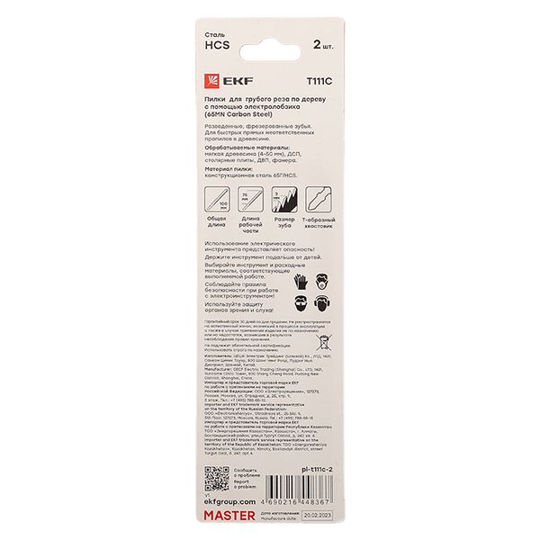 В нашем магазине «Главэлектрика» в Екатеринбурге, вы можете приобрести товар: «Пилки для электролобзика T111C (грубый рез по дереву)(HCS)(2 шт) EKF Master» с доставкой по г. Екатеринбург.