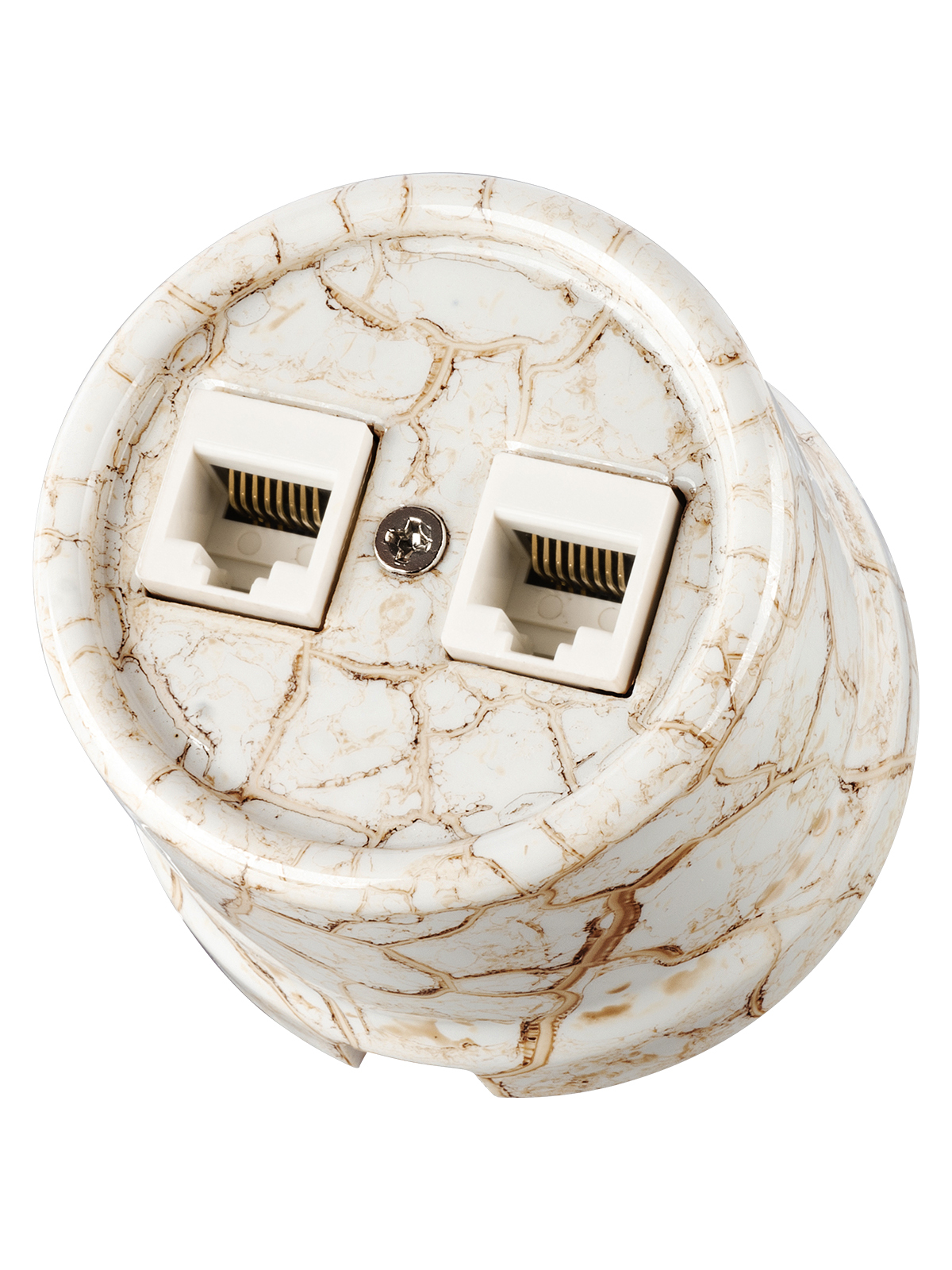 Розетка двойная компьютерная RJ45 мраморная «Болонь» TDM - это стильное и функциональное устройство, которое позволит подключить два компьютера к интернету или сети одновременно. Изготовленная из высококачественного мрамора, она не только обеспечивает надежное соединение, но и станет элегантным дополнением к любому интерьеру. Благодаря удобной конструкции и прочным материалам, эта розетка обеспечит стабильную работу вашей домашней сети на долгие годы.