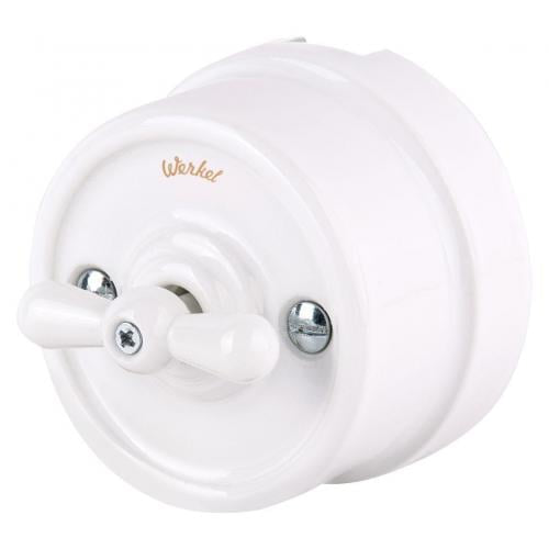 Переключатель поворотный одноклавишный Werkel Retro белый, керамика a036793 Тип выключателя: переключательСтепень защиты (IP): IP20