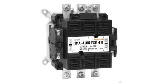 ПМА-4100 УХЛ4 В оснащен двумя замыкающими контактами и двумя размыкающими контактами. Такая конфигурация позволяет гибко настраивать работу пускателя под нужды вашей системы. Плюс, он имеет номинальный ток до 63А, что делает его идеальным для использования в различных промышленных секторах.