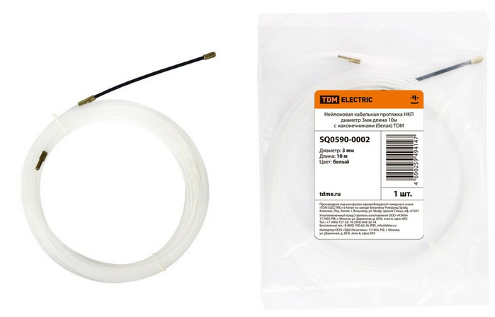 Протяжка кабельная 3мм, 10м нейлон НКП с наконечниками (белая) TDM - надежный и универсальный инструмент, предназначенный для проведения кабелей и проводов внутри помещений. Сделана из прочного нейлона, которое обеспечивает высокую износостойкость и долгий срок службы. Длина протяжки составляет 10 метров, что позволяет легко достичь нужной точки. Протяжка имеет диаметр 3 мм, благодаря чему она компактна и удобна в использовании. Белый цвет обеспечивает хорошую видимость инструмента и упрощает его поиск и отслеживание на рабочей площадке. Наконечники в комплекте обеспечивают надежное крепление кабеля и препятствуют его скольжению. Протяжка кабельная 3мм, 10м нейлон НКП с наконечниками (белая) TDM - незаменимый помощник для профессиональных электриков и монтажников, а также для людей, занимающихся самостоятельной проводкой в доме или офисе.