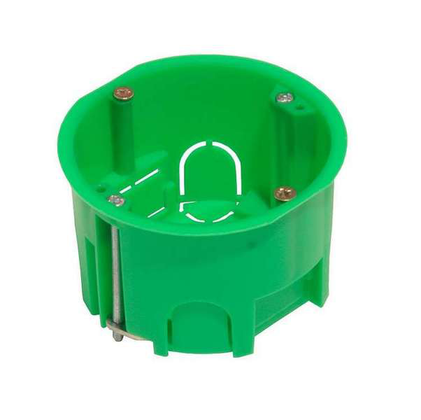 Коробка установочная выполнена из высококачественного материала, обладающего прочностью и стойкостью к механическим повреждениям. Металлические лапки на коробке обеспечивают дополнительную надежность и жесткость конструкции, что позволяет избежать прогибов и деформаций со временем.