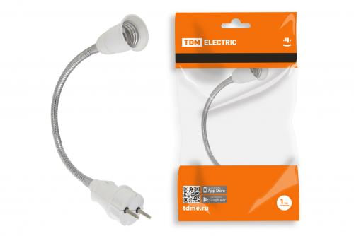 TDM Переходник вилка-Е27 гибкий 300мм с выкл. Бел. SQ0335-1011 - это удобный и функциональный переходник, который позволяет подключить лампу с цоколем Е27 к розетке с вилкой. Гибкая конструкция переходника длиной 300 мм обеспечивает гибкость и удобство при подключении лампы в труднодоступных местах.Особенностью данного переходника является наличие встроенного выключателя, который позволяет управлять подключенным освещением без необходимости выдергивать вилку из розетки. Это очень удобно, особенно если розетка находится в труднодоступном месте или если необходимо быстро выключить или включить освещение.