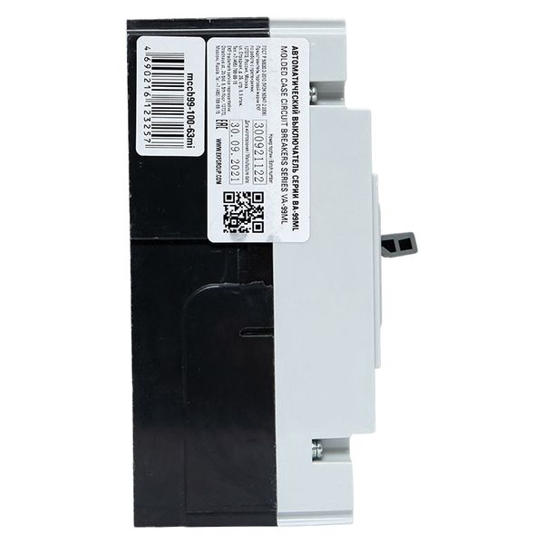 Выключатель ВА-99 выполнен в виде моноблока и состоит из основания и крышки с фальшпанелью, в которой имеется окно для рукоятки управления и толкатель кнопки «Тест» - проверки механизма отключения выключателя. Основание выполнено из термостойкой пластмассы, не поддерживающей горение и являющейся несущей конструкцией для присоединительных зажимов, неподвижных и подвижных контактов с системой дугогашения, механизма управления, блока защиты от сверхтоков. Крышка закрывает все подвижные элементы механизма управления и внутренние токоведущие части.