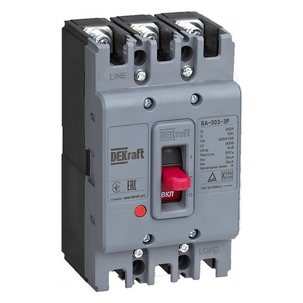 Силовой автомат DEKraft 3P 180А 36кА ВА-303 идеально подходит для использования в промышленных и коммерческих электрических системах, где требуется надежная защита и высокая производительность.