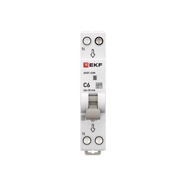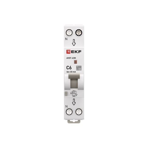 В нашем магазине «Главэлектрика» в Екатеринбурге, вы можете приобрести товар: «Диф. автомат 2П 6А 30мА (1мод, хар. C, электронный, тип А) 6кА EKF PROxiмА АВДТ-63М» с доставкой по г. Екатеринбург.