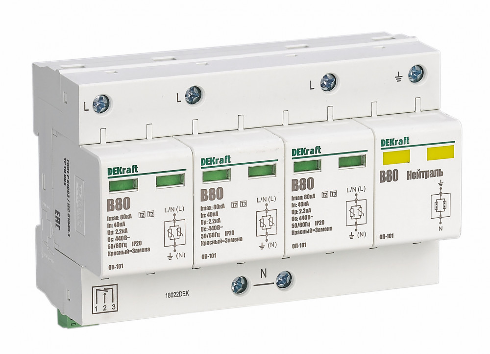 В нашем магазине «Главэлектрика» в Екатеринбурге, вы можете приобрести товар: «Огран. перенапр. 4P 80кА B 420В ОП-101 DEKraft 18022DEK» с доставкой по г. Екатеринбург.